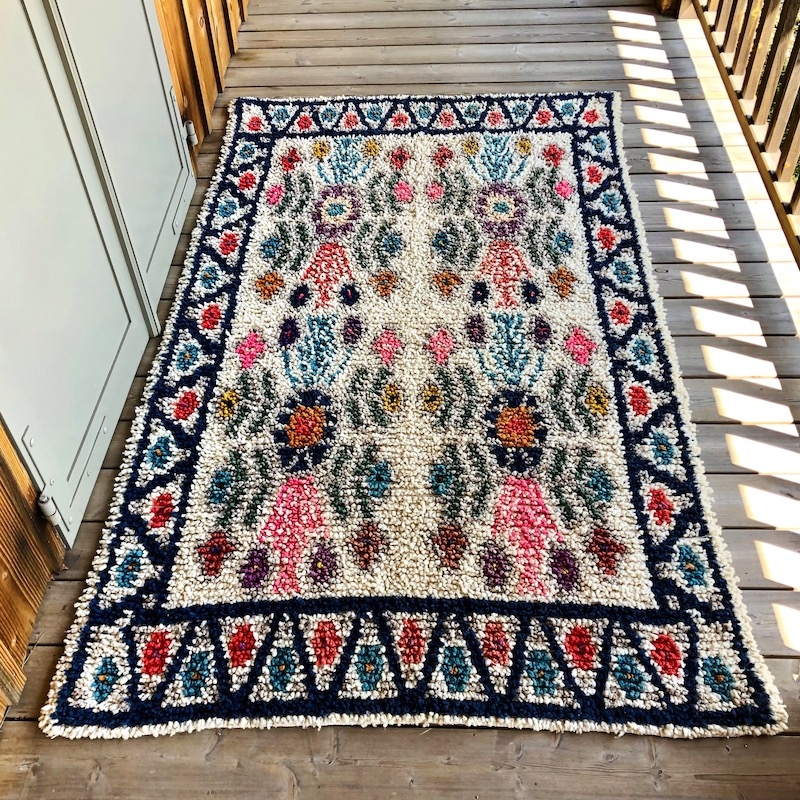 Tapis en laine à poils longs fait main par l'un de nos artisans partenaires du Guatemala.