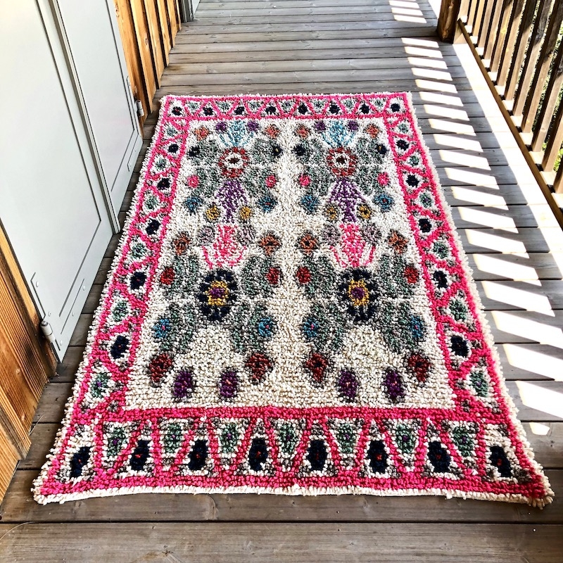 Tapis en laine à poils longs fait main par l'un de nos artisans partenaires du Guatemala.
